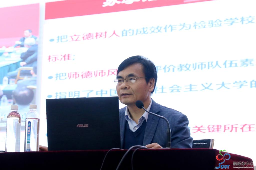 胡兴禹指出,立德树人成效是检验学校一切工作的根本标准,师德师风是评价教师队伍素质的第一标准、是实现立德树人根本任务的关键所在。他从“教师:崇高、伟大而受人尊重的职业”“师德的重要意义”“师德建设的措施”三个方面,结合大量案例,作了系统阐述。