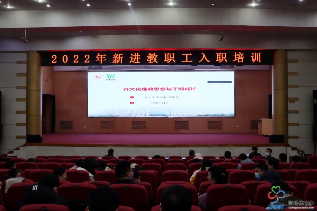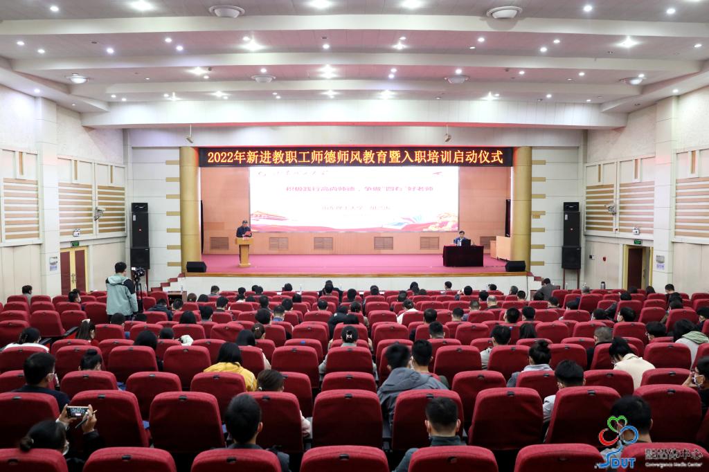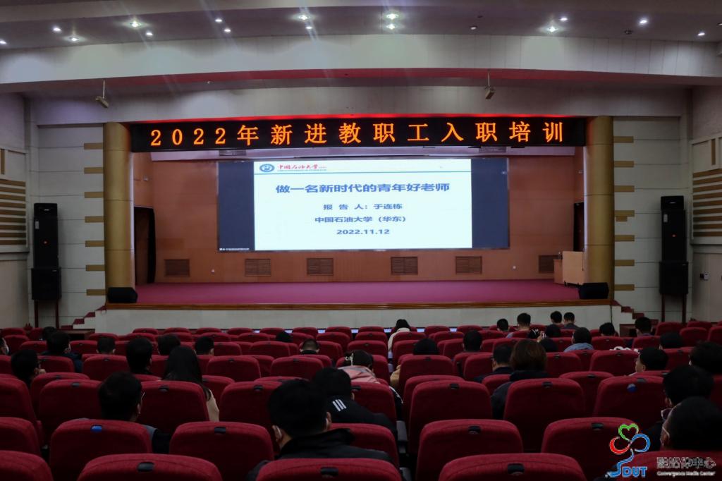 11月10日下午,学校在3号教学楼举行2022年新进教职工师德师风教育暨入职培训。校党委书记胡兴禹以“积极践行高尚师德 争做‘四有’好老师”为题作了师德师风专题报告,校党委副书记杨赟主持开班仪式,相关部门负责人、全体新入职教师聆听了报告。