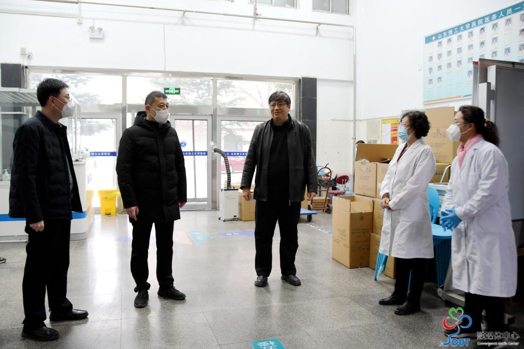 校党委副书记杨赟,校党委常委、副校长丛海林、陈靖先后来到学区派出所、24号学生公寓、校医院、北门值班室,走访慰问了派出所民警、留校学生、公寓值班人员、医生护士、保安。