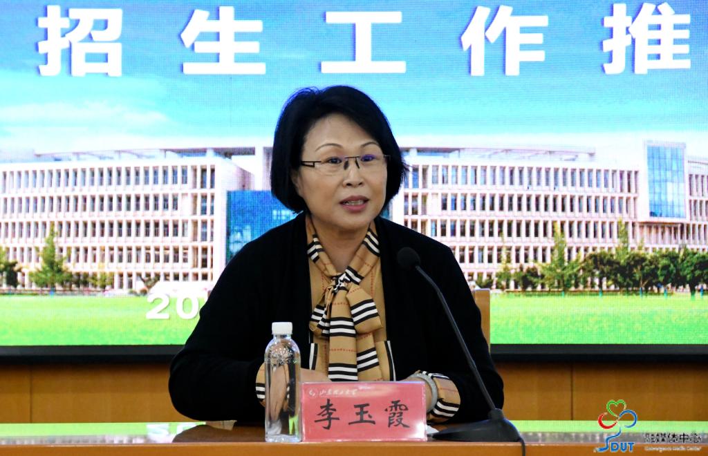 李玉霞作了讲话。她强调,生源质量事关学校人才培养质量、学生就业质量,是学校事业发展的重要因素。要建立“大宣传”格局,树立全校上下“一盘棋”的思想,各学院、各部门单位要加强协同联动,高质量完成招生任务;要加大对招生宣传工作支持力度,拓宽宣传渠道,高效开展招生宣传工作;要克服学校地域不利的影响,用“有解思维”解决面临的实际困难,不断提高学校社会形象和影响力;要优化本科生、研究生招生比例,提升办学层次。