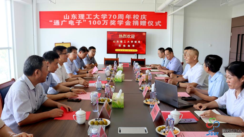 9月9日上午,山东通广电子股份有限公司捐资100万元设立“通广电子奖学金”,助力学校70周年校庆。校党委书记于红波、党委副书记苏守波,通广电子董事长王林、总经理王维良出席捐赠仪式。捐赠仪式在公司会议室举行。