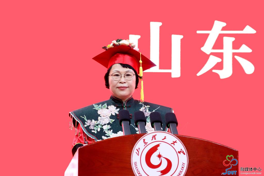 李玉霞深情地说,今天同学们即将启程远航,奔赴五湖四海。希望大家牢记“厚德、博学、笃行、至善”的校训,怀抱梦想又脚踏实地,敢想敢为又善作善成,努力在大有可为的时代逐梦前行,在民族复兴的伟大征程中绽放绚丽之花。
