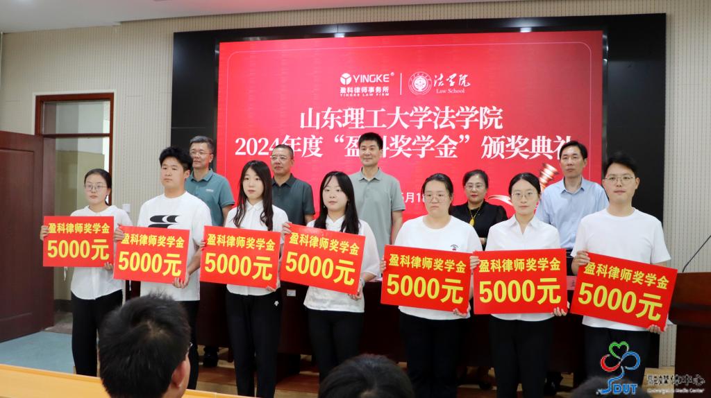 6月18日,法学院2024年度“盈科奖学金”颁奖典礼在2号教学楼举行。党委常委、副校长陈靖,北京市盈科(淄博)律师事务所监事会主任、盈科中国公益委员会副主任王玉清出席,学生工作部、法学院负责人及师生代表参加。