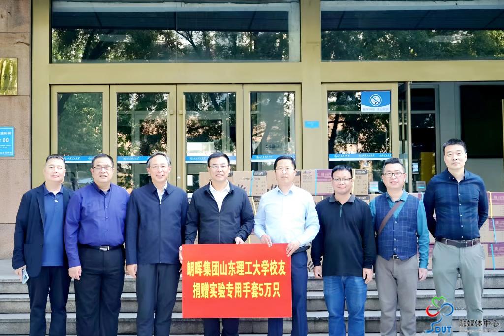仪式上,王光亮代表朗晖集团校友向学院捐赠5万只实验专用手套,表达了对学校、学院、老师辛勤培育的感恩以及尽绵薄之力助推母校发展的情怀,并祝福母校蓬勃发展。