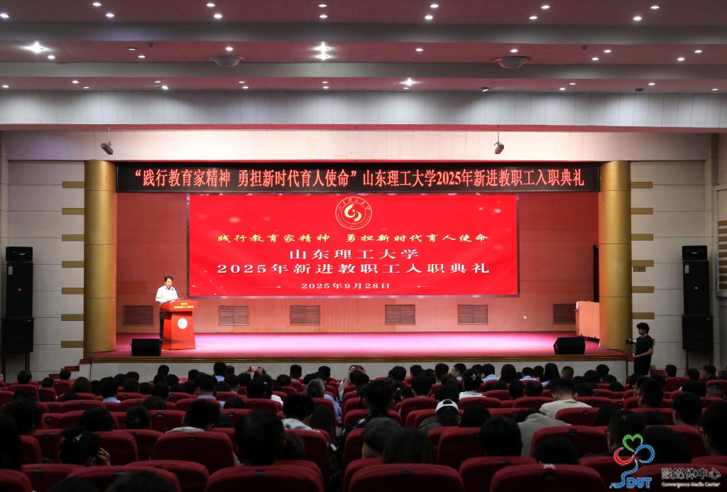 9月28日上午,学校在3号教学楼报告厅举行“践行教育家精神 勇担新时代育人使命”2025年新进教职工入职典礼。校党委书记于红波出席并讲话,校领导苏守波、杜方岭、郭庆兵、陈盛伟、陈靖、庞秋香出席,学校近一年新进教职工,各部门单位、各学院负责人及师生代表共400余人参加仪式。典礼由校党委副书记苏守波主持。
