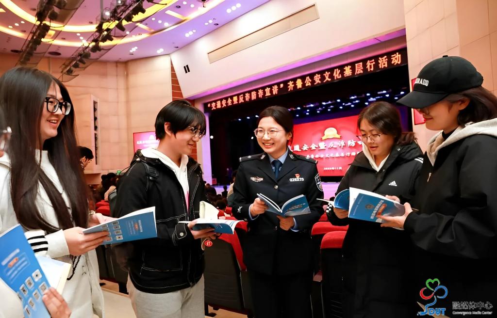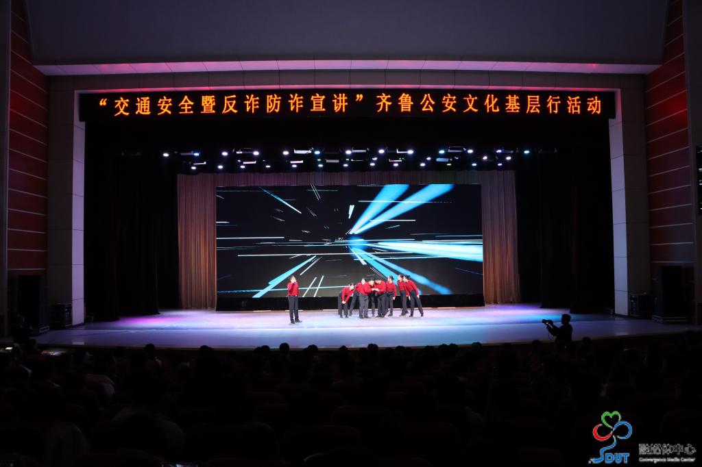 为进一步筑牢校园安全防线,切实提升师生道路交通安全应急避险能力与反诈防诈意识,11月10日,由省公安厅主办的“交通安全暨反诈防诈宣讲”齐鲁公安文化基层行文艺汇演活动在我校大学生艺术中心礼堂举行。校党委副书记杜方岭,省公安厅、淄博市公安局有关部门负责人出席,与现场1000余名师生共同观看了演出。
