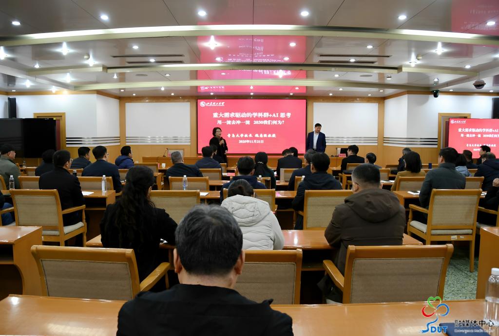 李玉霞在主持时指出,报告站在人工智能发展前沿,阐述了人工智能对科研创新的深刻影响,结合办学实践介绍了学科建设的战略谋划。她表示,要认真学习领会报告,加强人工智能应用,统筹谋划学科建设,强化校内协同与校外联动,推动学科建设迈上新台阶。她希望,不断深化与青岛大学的合作,围绕国家与区域重大战略需求,深化校际协同创新,携手为教育强省、强国建设贡献智慧和力量。