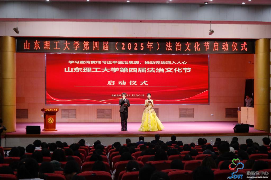 11月30日下午,学校第四届法治文化节启动仪式在3号报告厅举行,党委常委、副校长郭庆兵,山东省教育厅政策法规处处长夏贞鹏,淄博市司法局副局长、二级调研员刘志强出席并致辞,宣传部、学生工作部、校团委、法律事务室、法学院等负责人、师生代表参加。