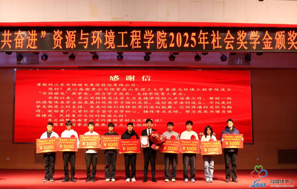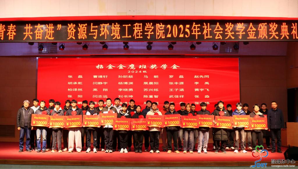 12月17日晚,资源与环境工程学院在3号教学楼报告厅举行“正青春 共奋进”2025年社会奖学金颁奖典礼,表彰奖励在2024-2025学年中各方面表现突出的17个学生先进集体和58名个人,并为我校与招金矿业股份有限公司共同培养的62名招金金鹰班学生颁发“招金金鹰班”奖学金。