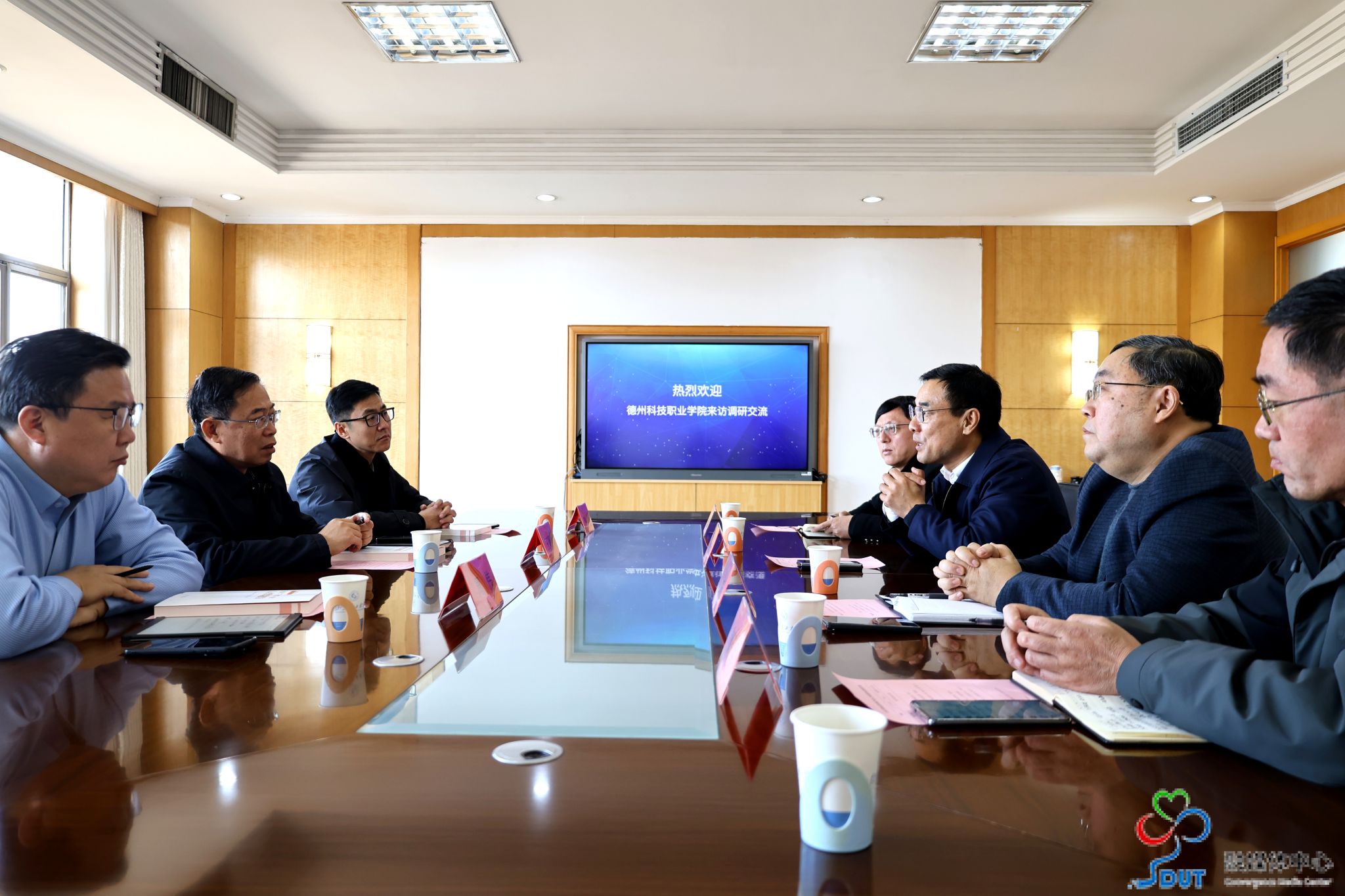 1月7日,德州科技职业学院党委副书记、校长王昭风,党委委员、副校长周伟一行3人来校调研交流。我校党委常委、副校长崔焕勇,山东省职业教育和产业人才研究院负责人等与客人,在鸿远楼八楼会议室进行了座谈交流。