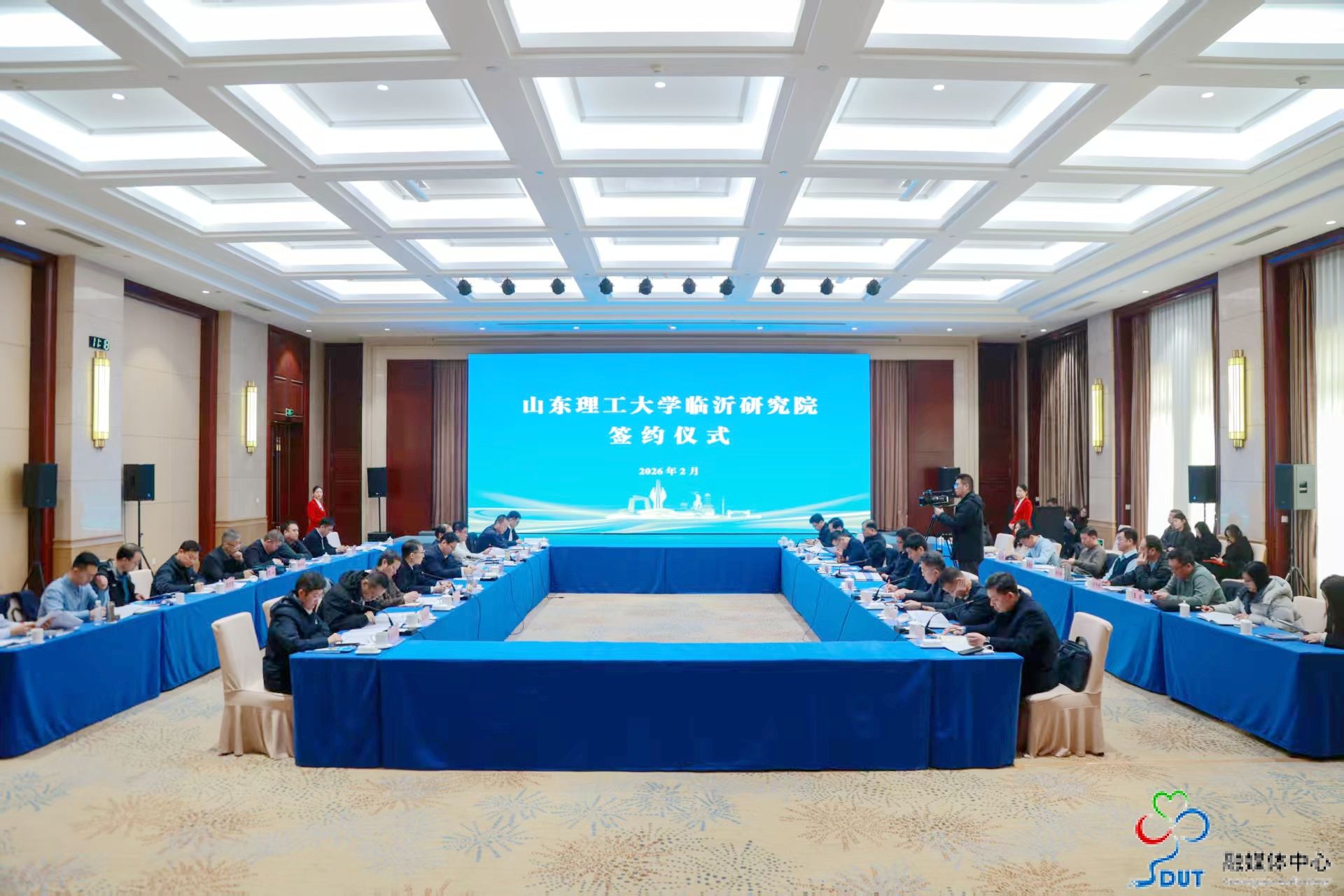 本网讯 2月5日,山东理工大学临沂研究院签约仪式在临沂市沂河宾馆举行,校党委书记于红波,党委常委、副校长陈靖,临沂市委常委、组织部部长肖永涛,副市长、市政府党组成员孙德士出席活动。