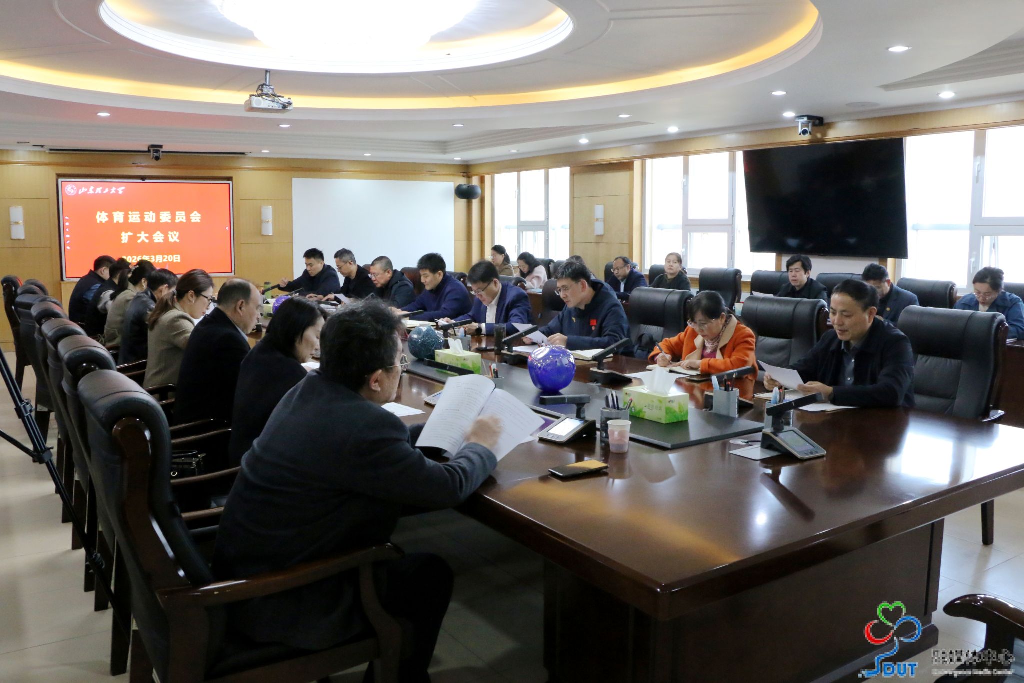会上,体育学院负责人分别就学校2026年春季运动会筹备工作、《山东理工大学体育工作实施方案》作了说明和解读;教务处相关负责人传达了山东省教育厅关于组织开展2025年普通高校《国家学生体质健康标准(2014年修订)》测试数据抽查复核工作的通知,并部署了我校体测抽测工作。与会人员就相关问题进行了讨论。