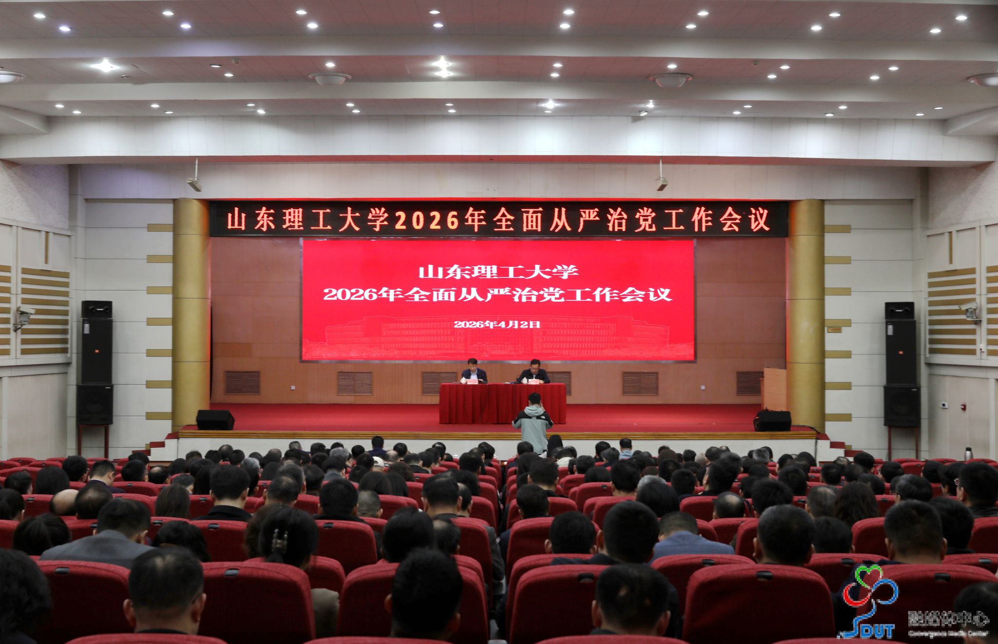本网讯 4月2日上午,学校在3号教学楼报告厅召开2026年全面从严治党工作会议,深入学习贯彻二十届中央纪委五次全会精神、十二届省纪委五次全会精神,传达学习全省教育系统全面从严治党工作会议要求,分析学校当前全面从严治党形势,部署安排今年的重点任务,以更高标准、更实举措,纵深推进学校全面从严治党工作。校党委副书记苏守波主持会议并讲话,校党委副书记杜方岭传达上级有关精神。校党委委员、纪委委员、中层干部参加会议。