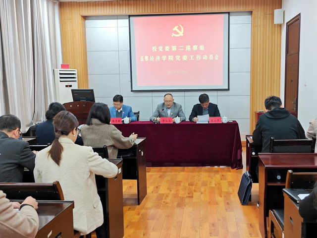 校党委第二巡察组副组长及有关同志,经济学院领导班子成员、各党支部书记及支部委员、科级干部、系主任、师生党员代表等参加会议。